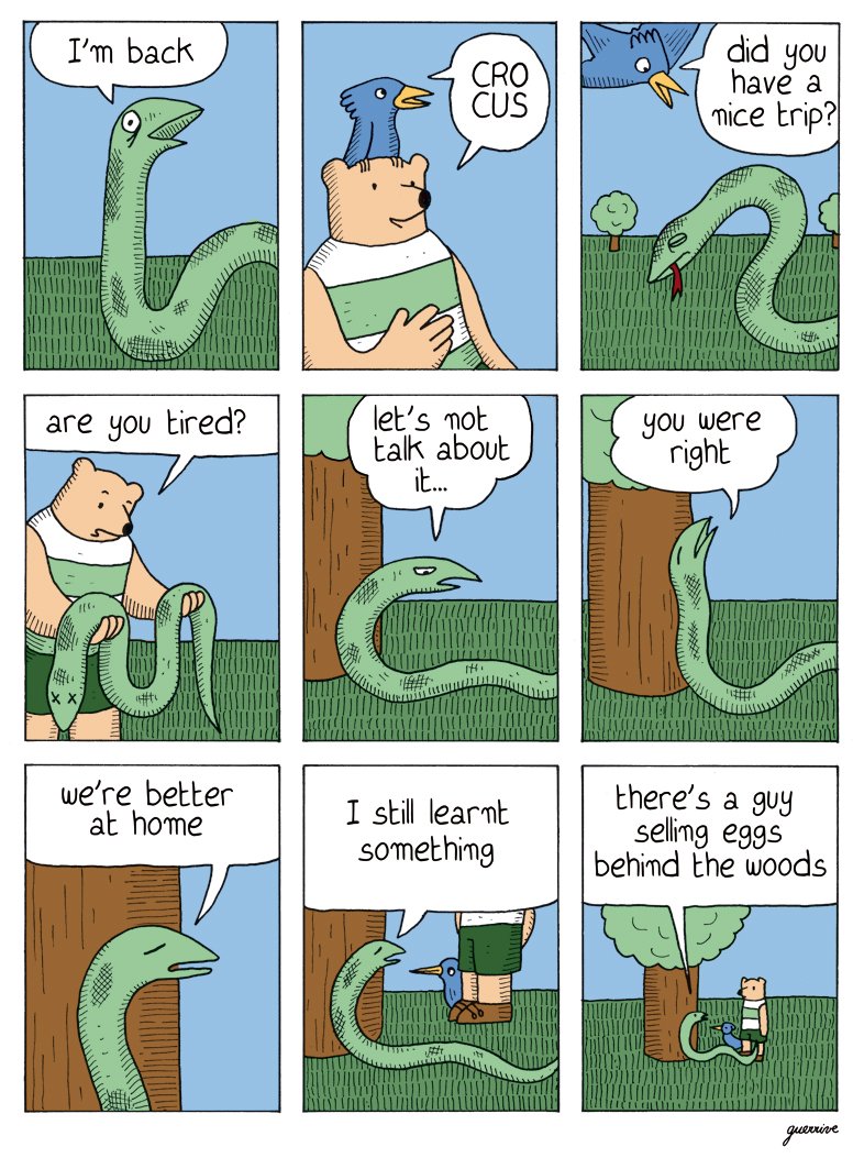 Sophie Guerrive was born in 1983 in Marseille (France) and studied art in Aix-en-Provence then illustration in Strasbourg. She participated in different newspapers, magazines, fanzines. Since 2007, she has published several comic and illustration books. Besides her short and minimalistic stories influenced by comic strips like Peanuts or Mafalda, she also works on bigger and very detailed drawings inspired by medieval illumination, oriental miniatures or japanese prints. Her favorites themes, such as medieval or antic history, sea world, animals or symbolism can be seen in many aspects of her work.